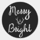 Black and White Merry and Bright with Antlers Classic Round Sticker