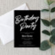 This is a black and white Birthday Party invitation. Minimal Minimalist Design. B-Day Invite. girl guy boy woman man plain simple clean