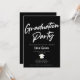 This is a black and white Graduation Party invitation. Minimal Minimalist Design. Grad Graduate Party Invite. girl guy boy woman man plain simple clean High school college master's PHD grad cap hat class of 2022 2023 2024