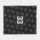 This cool volleyball fleece blanket features a simple, minimalist style volleyball graphic (showing only the volleyball's seams in black) patterned on a white background - player name in an "autograph" style font and jersey number in a varsity letter style font are customisable - by katz_d_zynes