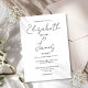 This black and white minimalist elegant script wedding invitation can be personalised with your information in chic typography. Designed by Thisisnotme©
