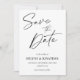 This trendy and unique Black And White Minimalist Elegant Wedding Save the Date card combines minimal elements with a touch of classic luxury, making it perfect for your special day. The refined calligraphy script typography adds a formal and sophisticated touch, setting the tone for a wedding that's both timeless and on-trend. Featuring a sleek black and white palette that exudes modern charm, this stylish card is a stunning preview of your upcoming celebration. The minimalist design allows your love story to take centre stage, making it a memorable keepsake for you and your guests. Elevate your wedding announcement with this exquisite choice that captures the essence of a truly special occasion!