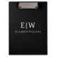 Elevate your workspace with our Black and White Minimalist Modern Monogram Clipboard. This stylish clipboard features a sleek black background adorned with a sophisticated white monogram, making it a perfect blend of functionality and elegance. Ideal for both professional and personal use, it keeps your documents organised while adding a touch of modern flair to any setting. The sturdy construction ensures durability, while the minimalist design allows for easy customisation. Make a statement in your office or at events with this chic and practical accessory!