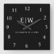 Black and White Minimalist Modern Monogram Square Wall Clock