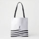 Black and White Minimalist Monogram Striped Tote Bag
