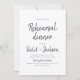 Modern minimalist rehearsal dinner invitations feature handwritten brushy script in charcoal black and white colour, simple and stylish.