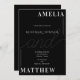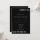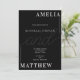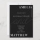 This rehearsal dinner invitation features a chic, black backdrop complemented by a minimalist aesthetic. The couple's names are elegantly displayed in bold, white serif font, linked by a tasteful ampersand. Its crisp, contemporary design exudes sophistication and style, ideal for announcing a pre-wedding event.