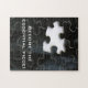 Jigsaw puzzles are family fun and this one becomes a puzzle within a puzzle. Enjoy this one adorned with a close up photograph of a black jigsaw puzzle segment with hints of blue and one missing puzzle piece. Click Customise it! to remove or change the text and you can select a font style, size and colour you like.