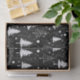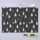 Black and white gift wrap featuring abstract Christmas tree pattern.