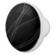 White ceramic knob with black front and thin white curvy stripes. Would look amazing on white cabinets with a black countertop in the kitchen, or a white medicine cabinet in a black and white bathroom.