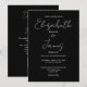 This black and white minimalist elegant script wedding invitation can be personalised with your information in chic typography with your wedding website details and your QR code on the reverse. Designed by Thisisnotme©