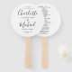 These fans were exactly as pictured. The quality is great. Perfect favor for a wedding!...I will make assembly a little easier by using a hot glue gun and finish them off with a ribbon. Beautifully printed. Crisp and clear text.
