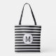 Black and White Modern Stripe Monogram Tote Bag