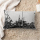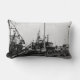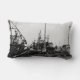 Black And White Monochrome Harbour Boats Lumbar Cushion