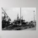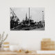 Black And White Monochrome Harbour Boats Poster