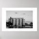 Black And White / Monochrome Grain Silos Rural Landscape Poster Print to add to your home / office / business decor collection. A cool gift / present idea for all who love nature, custom design items.