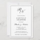 Classy couples bridal shower invitation featuring a simple design with your two initial monogram and your names in an elegant calligraphy inside of a thin border. The backside is solid black. This classic black and white design is perfect for a formal couples shower.