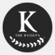 Black and White Monogram Initial Family Last Name Classic Round Sticker