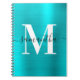 Black and White Monogram Turquoise Blue Foil Notebook