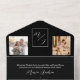 Embrace minimalist sophistication with our modern black and white wedding invitation. Featuring an elegant monogram on the top flap, three stunning photos of the couple, and a contemporary design that includes your wedding website and a QR code for effortless RSVP. Perfect for couples seeking chic simplicity with a touch of personal flair.