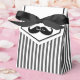 Stylish groomsmen gift box done in a grey and white striped pattern pattern, with a black outlined white front flap. Graphics of a black moustache, on the flap, has white text reading Thank You. Great little gift box for that special little thank you gift to your best man and groomsmen.