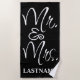 Looking for a unique and chic way to celebrate your wedding anniversary or special family occasion? Look no further than our custom black and white Mr. and Mrs. beach towel! This elegant script towel is the perfect way to show your loved ones how much you care. Featuring the custom family name of your choice, this towel is sure to be a hit at any event.