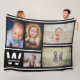 Black and White Multiple Photos Custom Monogram Fleece Blanket