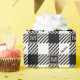 Black and White Name + Buffalo Check Monogram Wrapping Paper