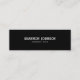 Professional narrow business card. Slender, minimal, high contrast design of white (and grey) text on black background. Simple, yet bold, skinny mini business card.