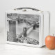 This is a standard metal lunchbox that appears to work just fine. We designed this box ourselves with an uploaded photo and custom text on the front and back. It looks absolutely beautiful except the front of the lunchbox is not centered like it shows in the photo. The print borders don't align with the inset flat part of the box where the preview photo online showed it perfectly centered in there. The back looks nice and centered though.