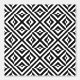 This wallpaper features a bold geometric pattern in a monochromatic colour scheme. Against a clean white background, interconnected black lines form a repetitive array of diamond and cross shapes. The graphic style evokes the elegance of Art Deco, with sharp lines and strong forms. This modern yet classic design could enhance any space, adding sophistication and versatility to your decor.