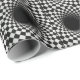 A tunnel-like optical illusion is created using a black and white chequered pattern, giving a dizzying sense of depth