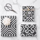 Set of three wrapping paper sheets. Each sheet features a seamless black and white op art pattern.