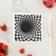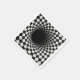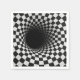 A tunnel-like optical illusion is created using a black and white chequered pattern, giving a dizzying sense of depth