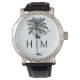 This modern coastal inspired watch features a black palm palmetto tree with a monogram that you can personalise with your choice of initials.
