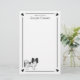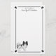 Destei's original cartoon illustration of a black and white coat colour Papillon breed dog. The dog is placed in one corner and the design is framed by borders that have a dog paw print in each corner. On the top there are two personalizable text areas.