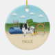 Black And White Papillon With Agility Equipment Ceramic Ornament