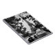 Notebook with black and white photograph of the Eiffel Tower across the River Seine in Paris, France.