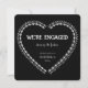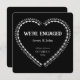 We're Engaged is a Black and White Gothic Engagement Party Invitation. Dark Goth Design with a Spine Heart form on the front, and a skeleton with a wine glass on the back. Vintage Public Domain elements.