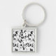 Black and White Pattern Birds on Cherry Blossoms Key Ring