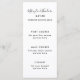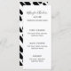 Black and White Modern Script Wedding Menu Card with Patterned Back of Card.