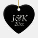 Black and White Personalied Heart Monogrammed Ceramic Ornament