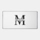 feature personalised black monogram in classic serif font style with box of name in the middle of monogram on white background.