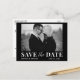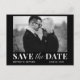 Modern Trendy Save The Date Black and White Photo Postcard with block script and calligraphy script combination.