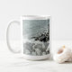 This mug features a beautiful monochromatic photo of a rocky Atlantic Ocean shore with customisable message on back.