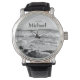 This watch features a beautiful black and white photo of a very wavy Atlantic Ocean shore and customisable name.