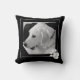 This pillow features a black and white photo of Olive, a beautiful Labrador mix. Photo and text can be customised.