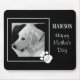This adorable mouse pad features a black and white photo of Olive, a beautiful Labrador mix. Photo and text are customisable.