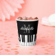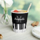 Black and white grand piano keys custom paper party cups. Personalised drink ware for piano player, musician, pianist, music teacher, students, kids etc. Stylish script typography template. Fun disposable cups for friends and family. Add your own monogram, name or funny quote. Lids optional. Elegant design for kids and adults. Great for Birthday party, classical music event, wedding and more.