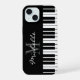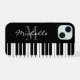 Black and white piano keys monogram iPhone 15 case. Classy monogrammed design for pianist, piano player, music teacher, instructor etc. Keyboard design with personalised name template. Budget friends cover to protect your precious phone.